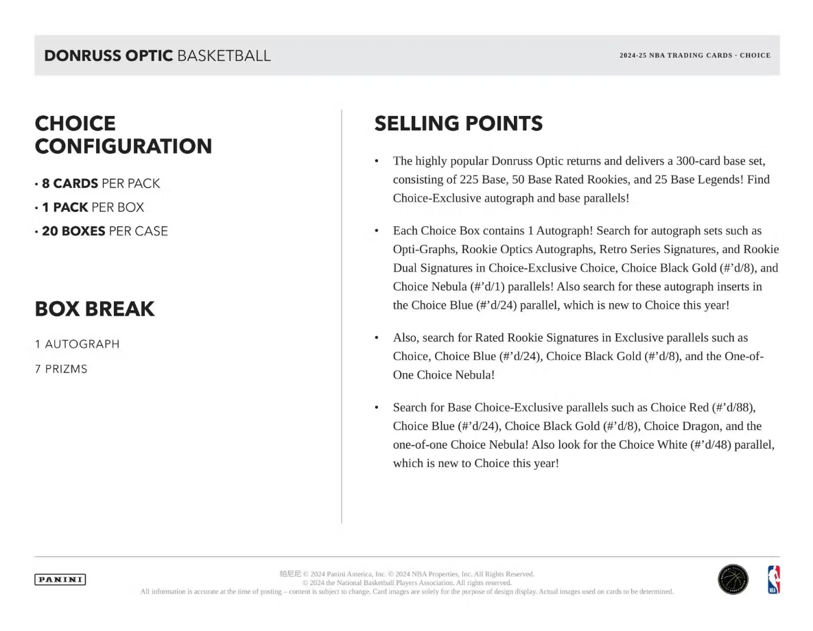 2024/25 Panini Donruss Optic Kosárlabda Choice Doboz