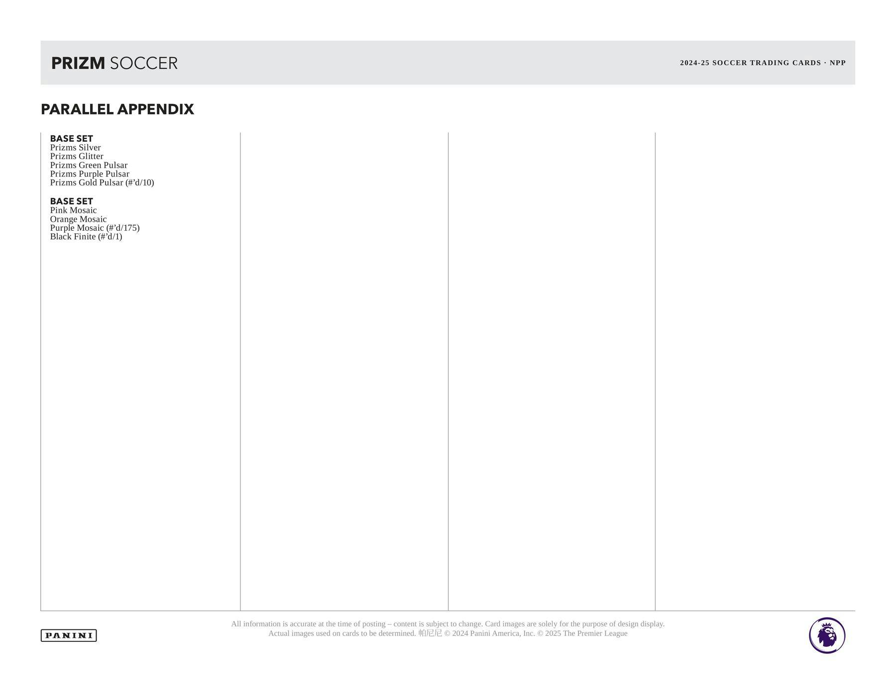 Minden doboz átlagosan három Pulsar Prizm kártyát, két alap Silver Prizm kártyát és hat insert lapot tartalmaz!