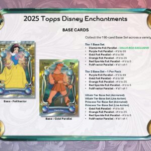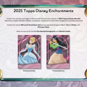 Fedezd fel a Disney csodáját és varázsát a 2025-ös Topps Disney Wonder első kiadásával, amely többszintű ellenőrzőlistát tartalmaz gonosztevőkről, hercegnőkről, királyi családtagokról és még sok másról a Disney univerzum minden tájáról!