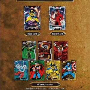 Gyűjtsd össze az alapkészletet – Marvel karakterekkel, (8) típusú párhuzamos karakterrel, beleértve az 1/1 COSMOS Black Gold kártyákat is!