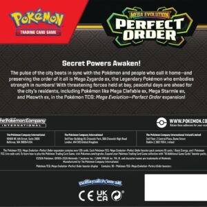 A fenyegető erők feltartóztatásával békés napok várnak a város lakóira, köztük olyan Pokémonokra, mint Mega Clefable ex, Mega Starmie ex és Meowth ex, a Pokémon TCG: Mega Evolution-Perfect Order kiegészítőben!
